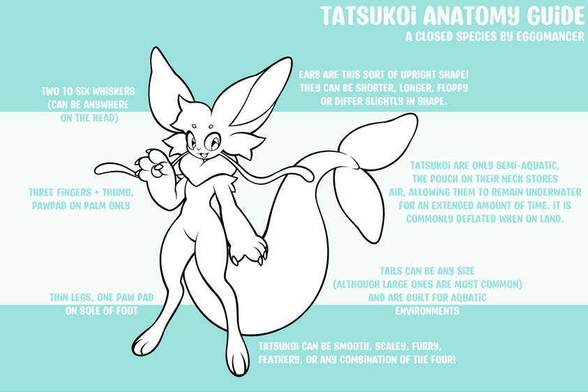Tatsukoi are a Closed Species by Eggomancer!They are semi-aquatic dragons with remarkable adaptability and an innate sense of adventure driving them to climb The Cascades, the spire of waterfalls that they call home.Scroll down for species info, traits, and lore!