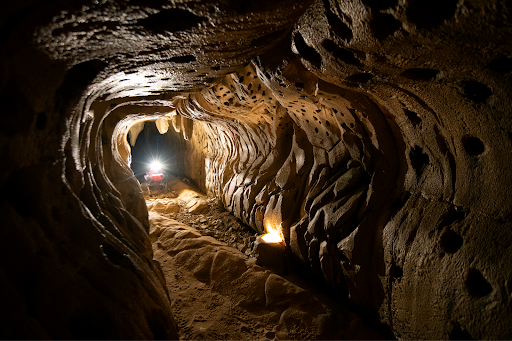 Layer four is quite difficult to get to. The falls between layers three and four are fast, they have strong currents that can easily sweep any unprepared Tatsukoi away. But if one cannot conquer these falls, they have no chance of making it any higher in the falls. It only gets more challenging from here. The fourth layer is not a comfortable place to be for most Tatsukoi. It is a dark, damp place with winding tunnels and steep caverns. Those who don’t know where they’re going can easily get lost in the twisting tunnels causing many to never make it out of this layer. Some eventually find their way out, but they are often changed by the experience. The overwhelming isolation of this layer is difficult to handle, and causes many to lose their minds.There are no real towns in this layer, but there are some small outposts! Many of these outposts take in lost Tatsukoi and try to set them on the right path. There are many Tatsukoi in this layer that are not so nice though. Many of the residents of this layer came here to separate themselves from society, and while some of them may just prefer isolation, there are some that are hiding out for a reason. This layer is a lawless land, there is no governing force.Rumors of treasure and secrets make many try to navigate this layer. The walls of this layer sometimes contain rare gemstones, which is what some are after. But there are also rumors of a place hidden within the falls, many believing the entrance to it is hidden in this layer. Many have tried to find it, but there has been no luck so far.An example of what I think the tunnels of this layer would look like.